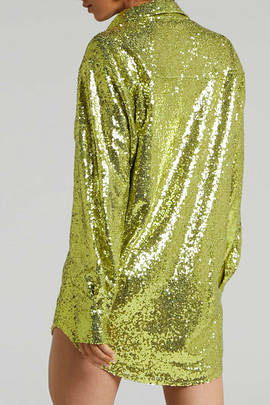 Casual Solid Sequins Shirt Dress Dresses(3 Colors)