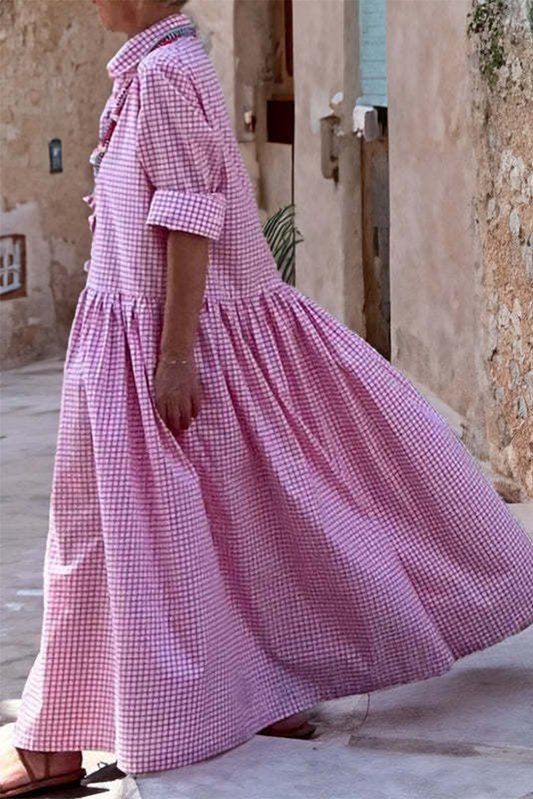 Casual Plaid Buttons Turndown Collar Long Sleeve Dresses