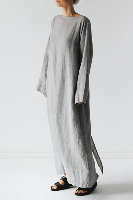 Casual Solid Slit O Neck Long Sleeve Dresses