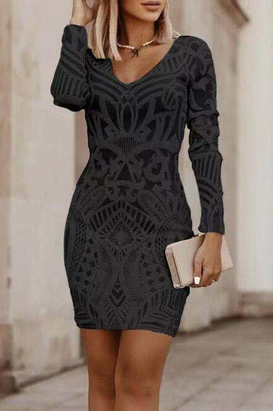 Casual Solid Patchwork V Neck Long Sleeve Dresses