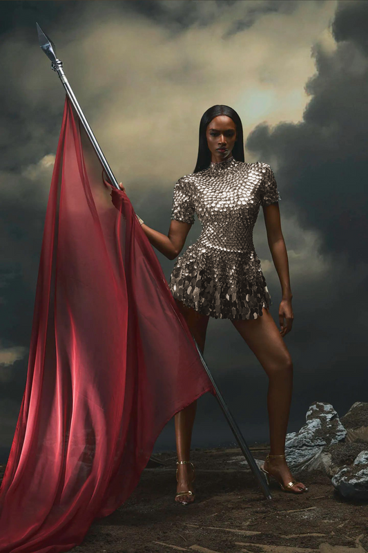 Yvonne Turtleneck Sheer Sleeves Mini Dress