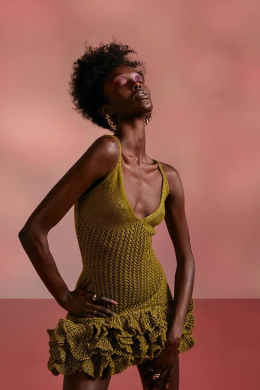 Sara V-neck Ruffle Hem Knit Mini Dress