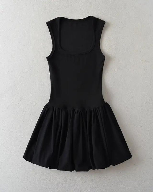 Women's Solid Color Pleated Panel Sleeveless Swing Dress