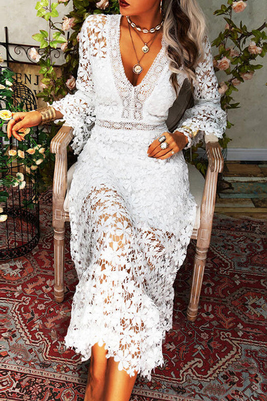 Sexy Lace Hollow Out Off Shoulder Lace Dress Dresses