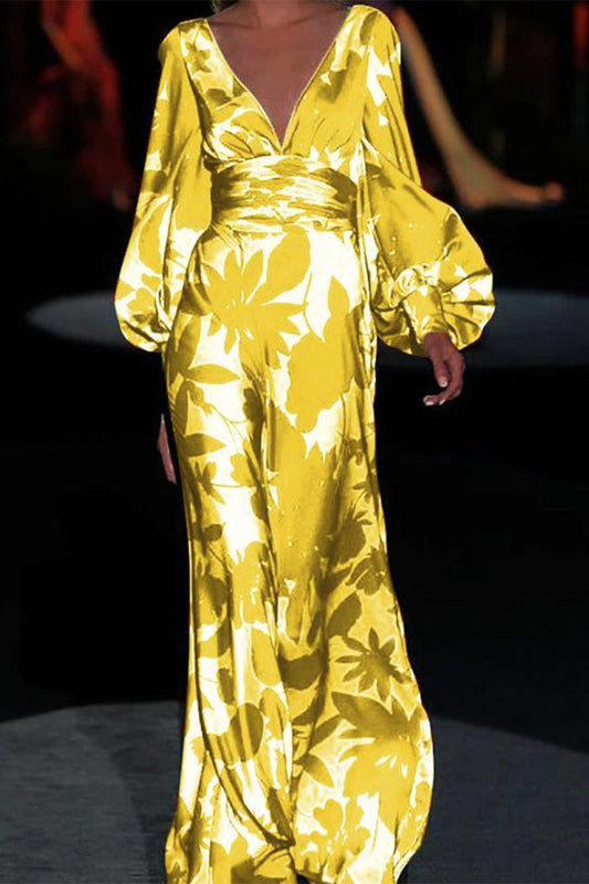 Elegant Floral Patchwork V Neck Irregular Dress Dresses