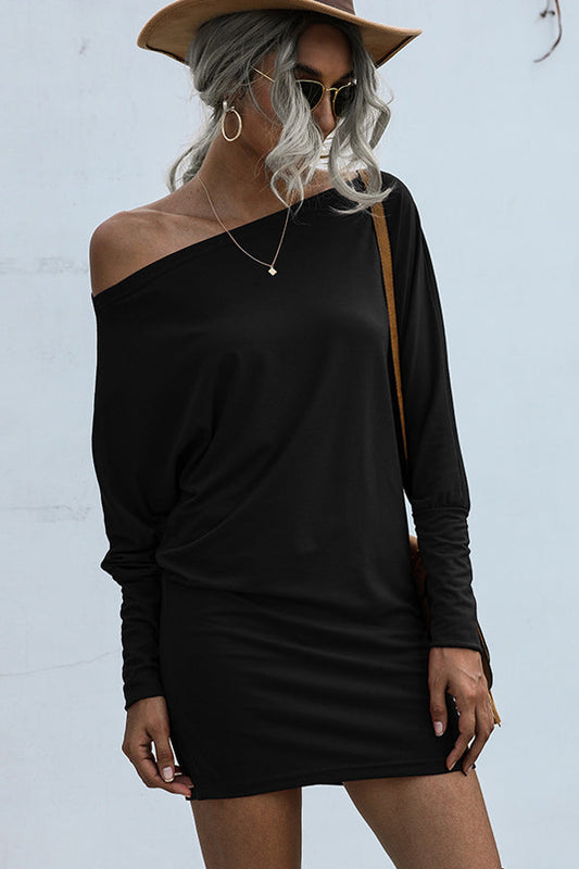 Casual Solid Patchwork Slit Oblique Collar Long Dress Dresses