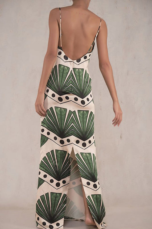 Sexy Casual Patchwork Backless Slit Contrast Spaghetti Strap Sleeveless Dress Dresses