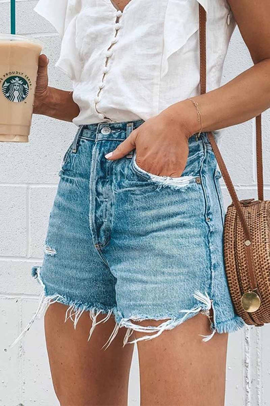 Street Solid Hollowed Out High Waist Straight Denim Jeans