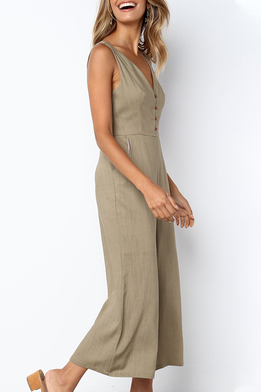 Fashion Street Solid Buckle Capris V Neck Jumpsuits