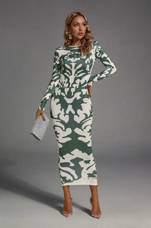 Delilah Green Open-back Printed Maxi Dress