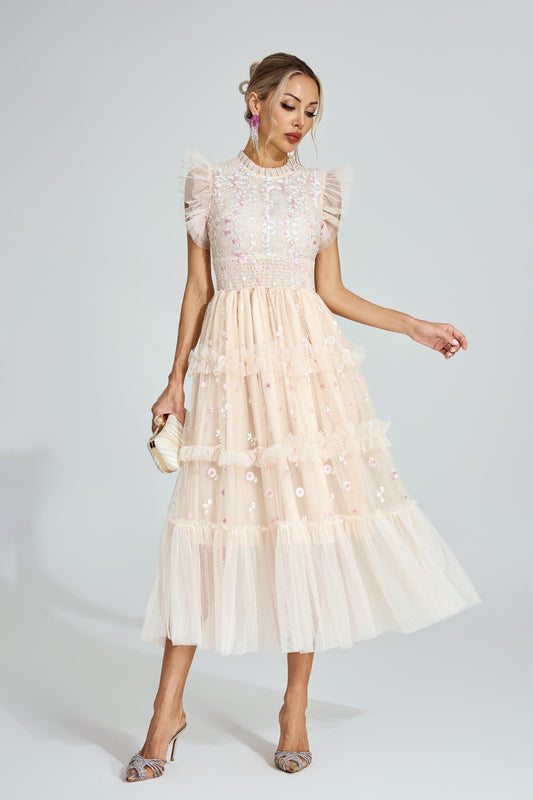 Hulda Apricot Embroidered Tulle Maxi Dress