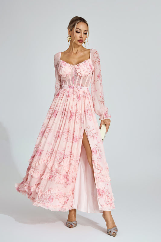 Walkley Pink Floral Chiffon Maxi Dress