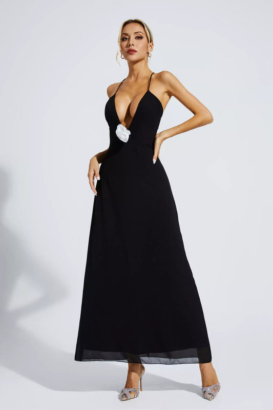 Wrenley Black Floral Embellished Maxi Dress