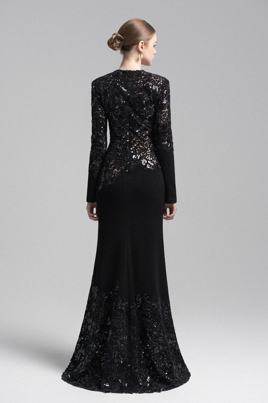 Sequin Splicing Embroidery Long Sleeve Maxi Dress