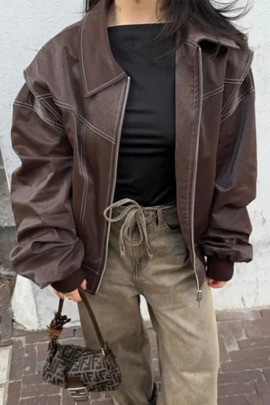 Casual Street Solid Color Patchwork Zipper Turndown Collar Outerwear