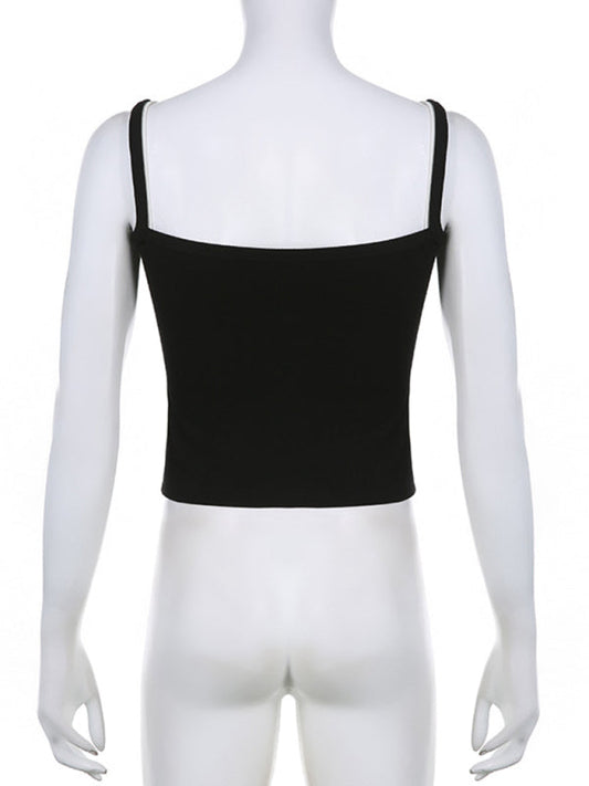 Women's Black and White Contrasting Color False Two-piece Stitching Slim Camisole Top