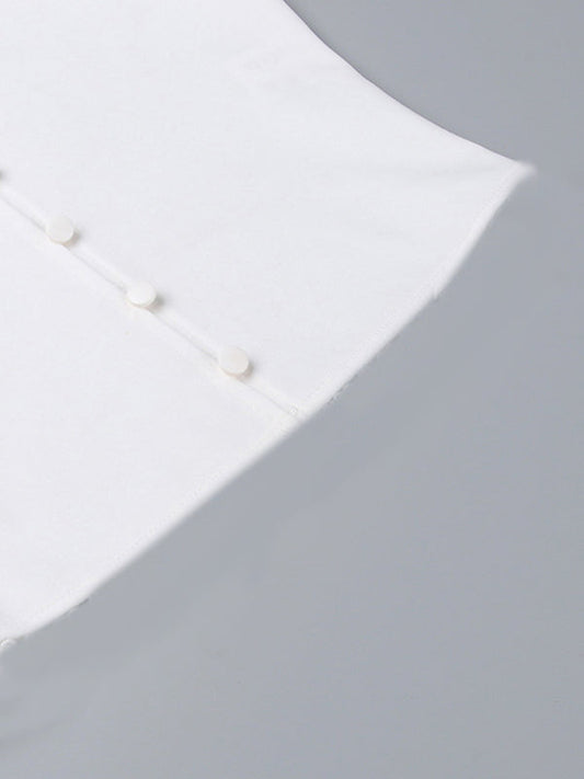 Sexy Daily Solid Color Embroidered Buttons See-Through U Neck Tops