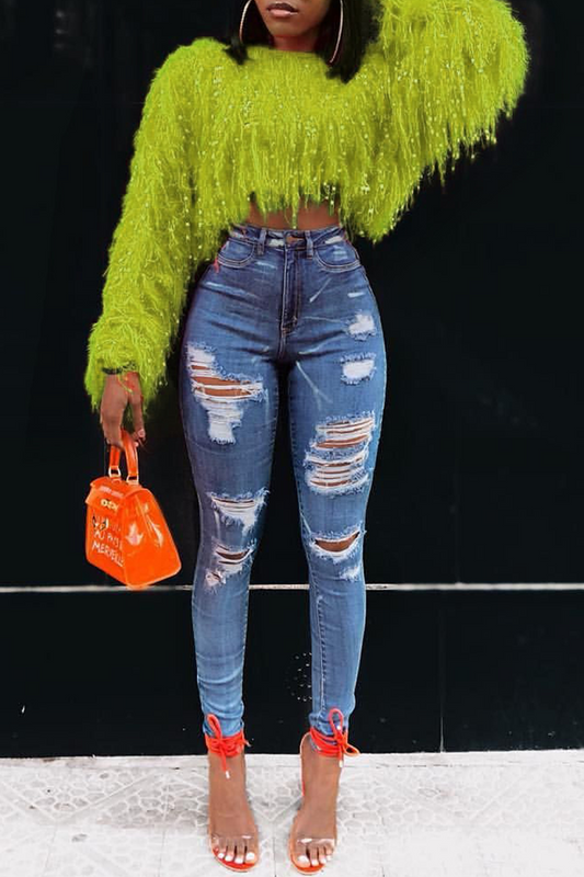 Fashion Solid Tassel O Neck Tops(4 colors)