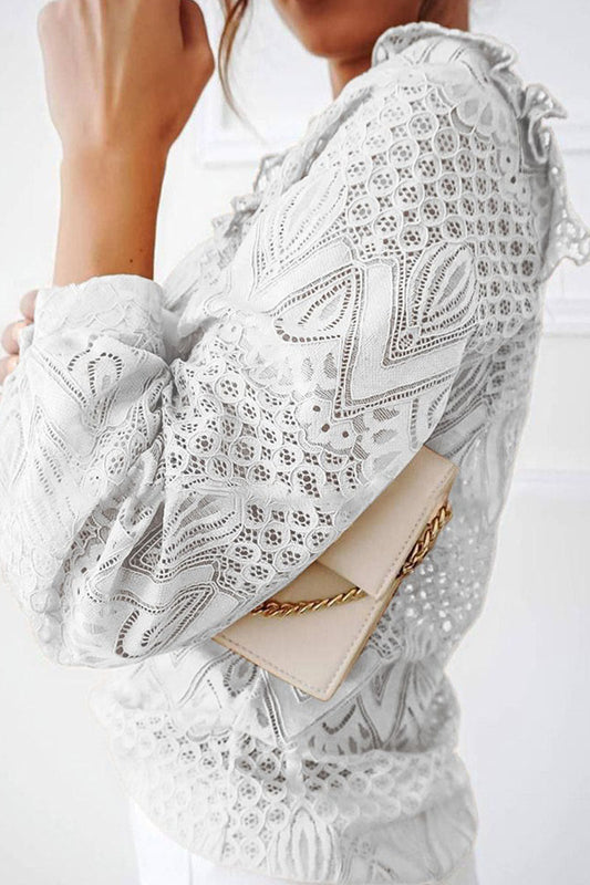 Sexy Daily Solid Color Embroidered Buttons See-Through U Neck Tops
