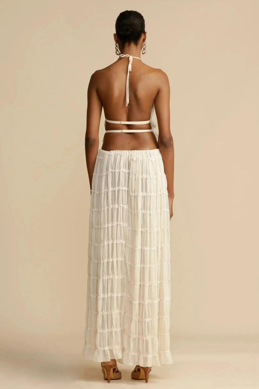 Smocking Halter Neck Backless Top & Mid Waist Maxi Skirt Set