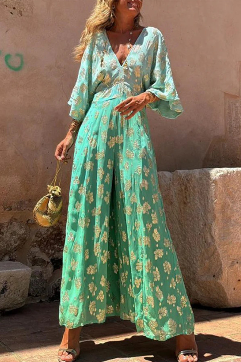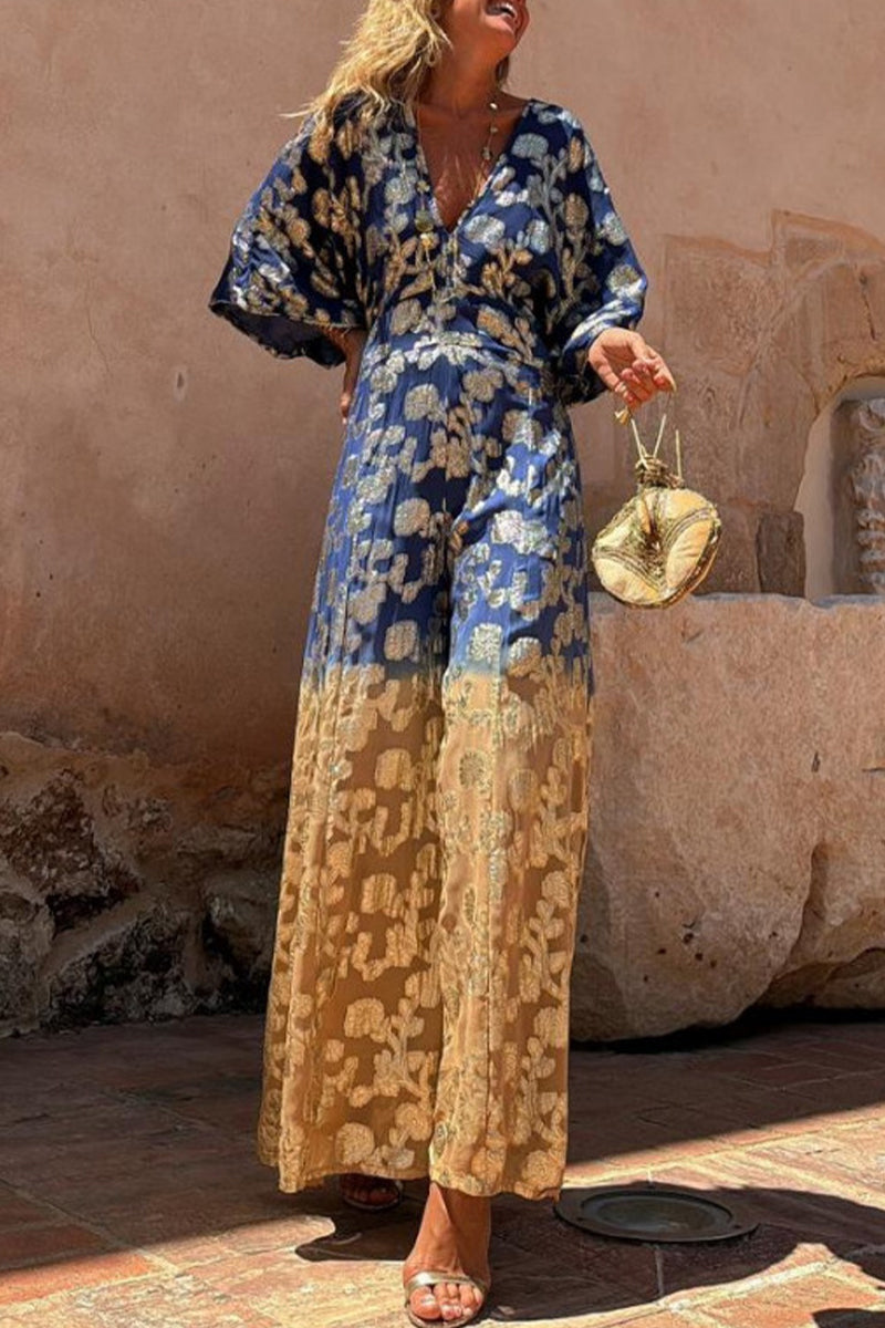 Casual Daily Gradient Print Bronzing Pattern V Neck Loose Jumpsuits