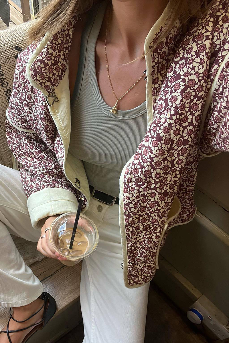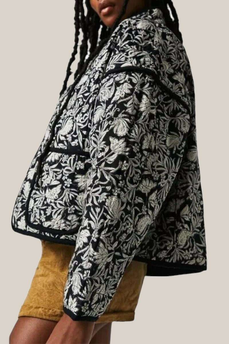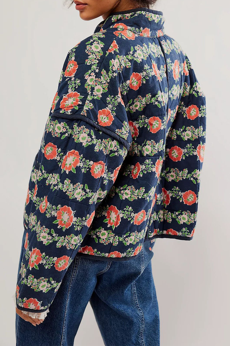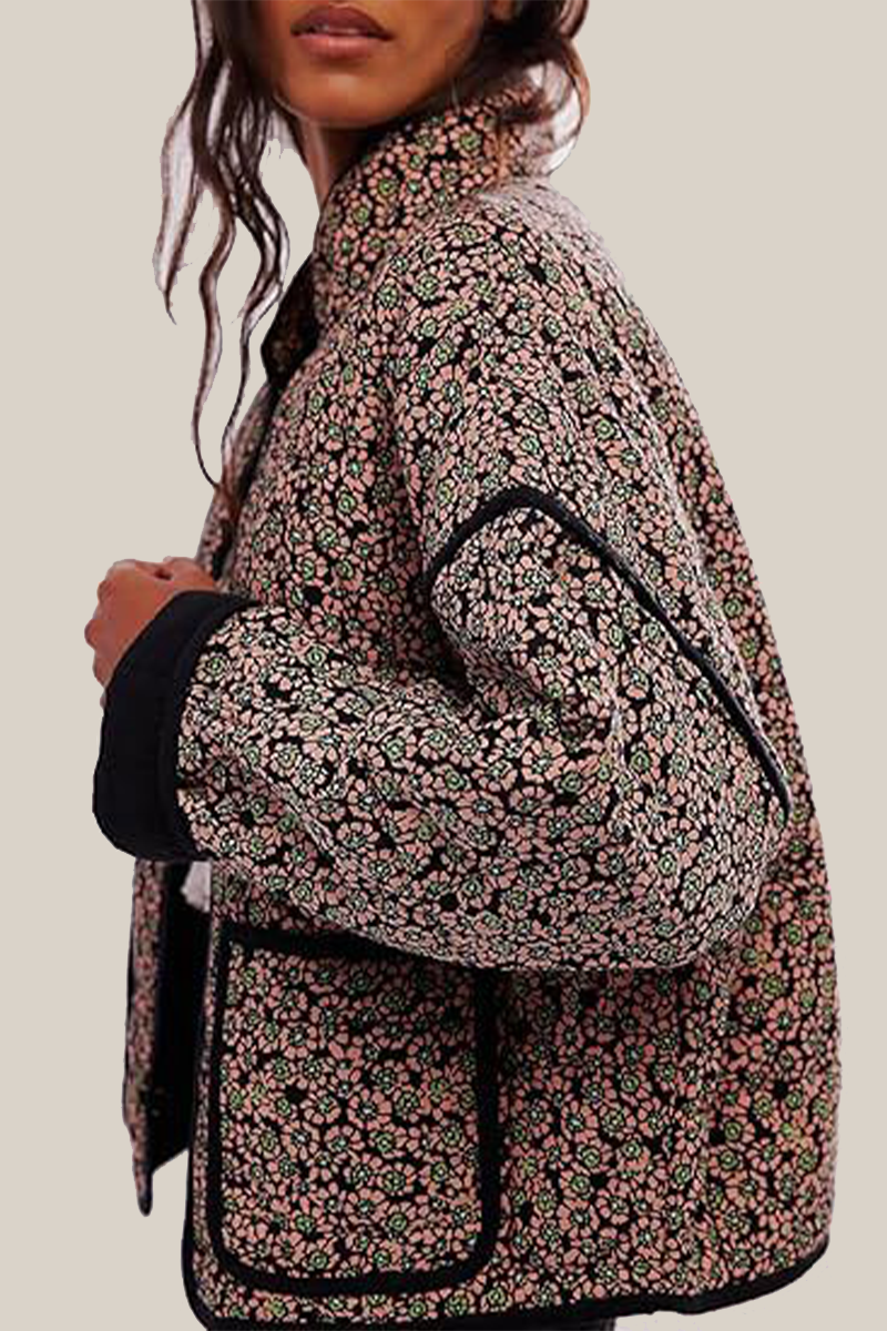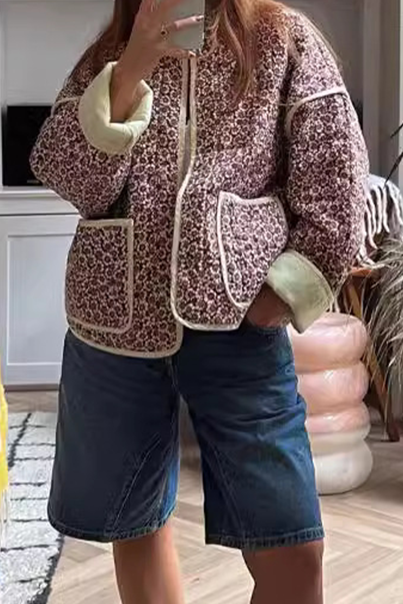 Casual Flowers Pocket Patchwork Contrast Mandarin Collar Outerwear(12 Colors)
