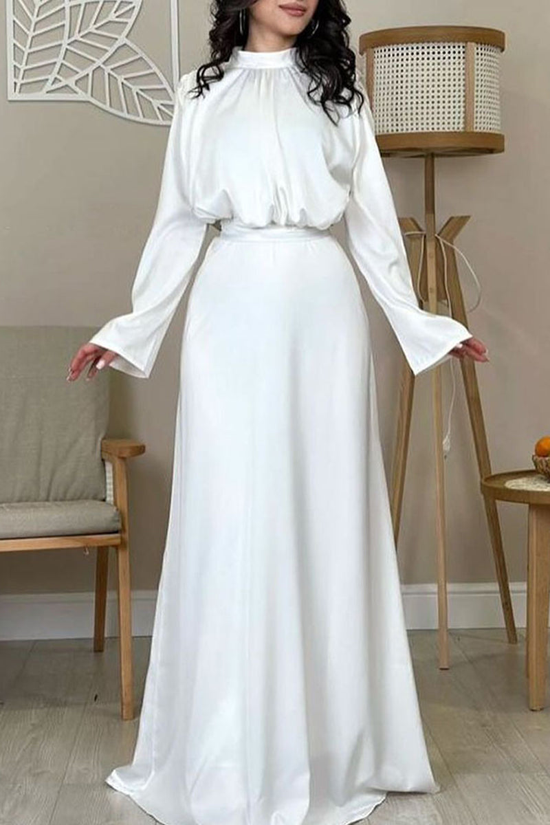 Celebrities Elegant Solid Frenulum Half A Turtleneck Waist Skirt Dresses