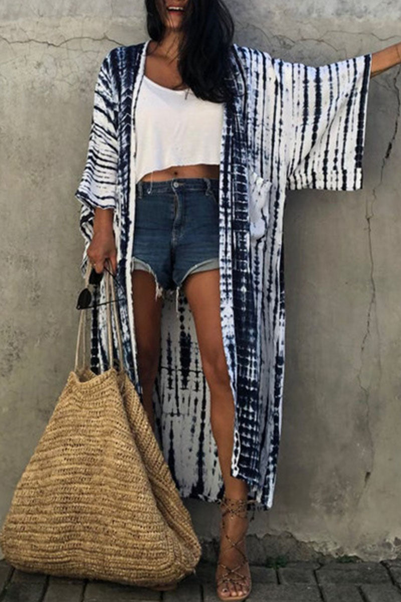 Fashion Vacation Print Frenulum Swimwears Cover Up(4 Colors)