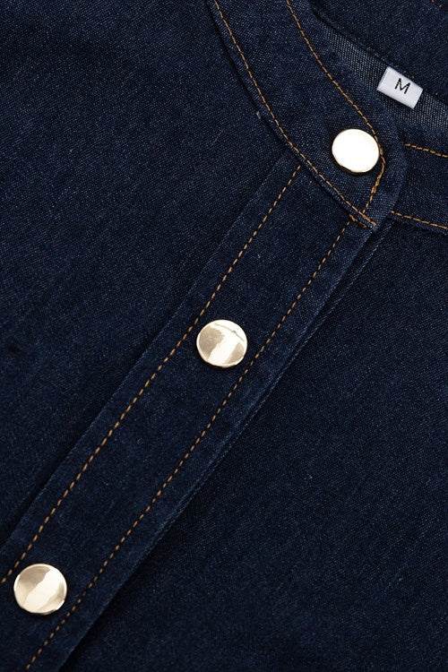 Metal Buttons, Contrast Stitch Line, Puff Sleeve, Round Neck, A-line, High Waist, Mini Length.