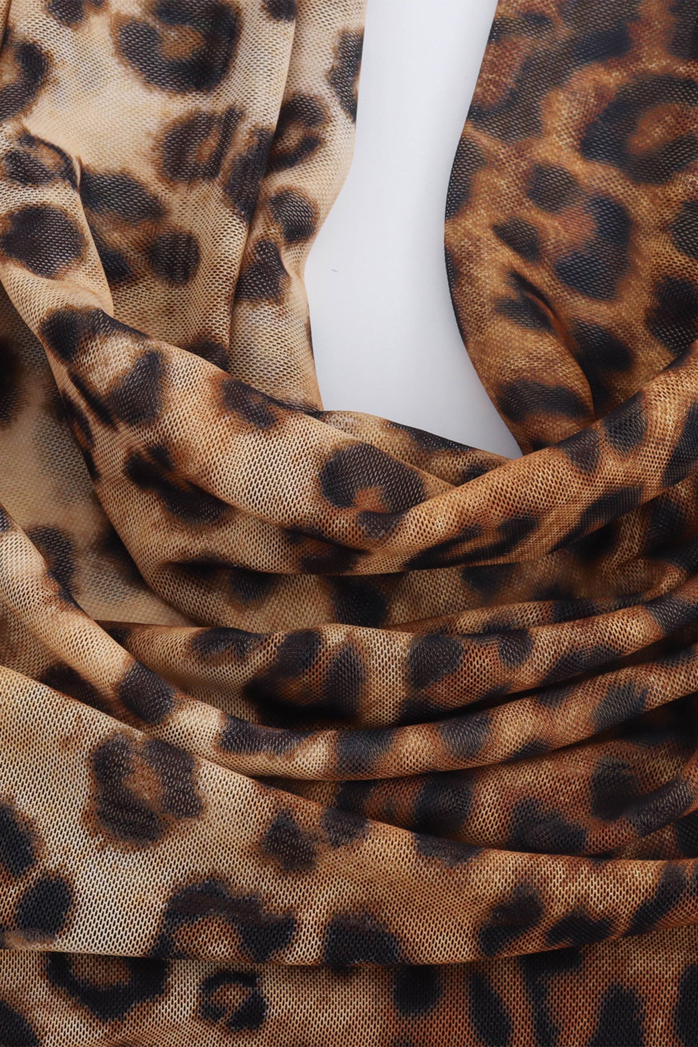 Leopard Print, Plunging Neckline, Draped Detail, Open Back, Maxi Length.