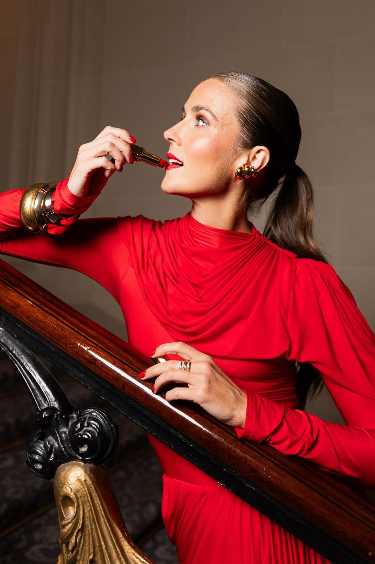 Asymmetric Drop Waist, Long Sleeve, Pleated, Maxi Length.