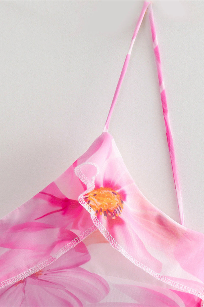 Sexy Floral Print Backless Ruffle V Neck Sling Dresses